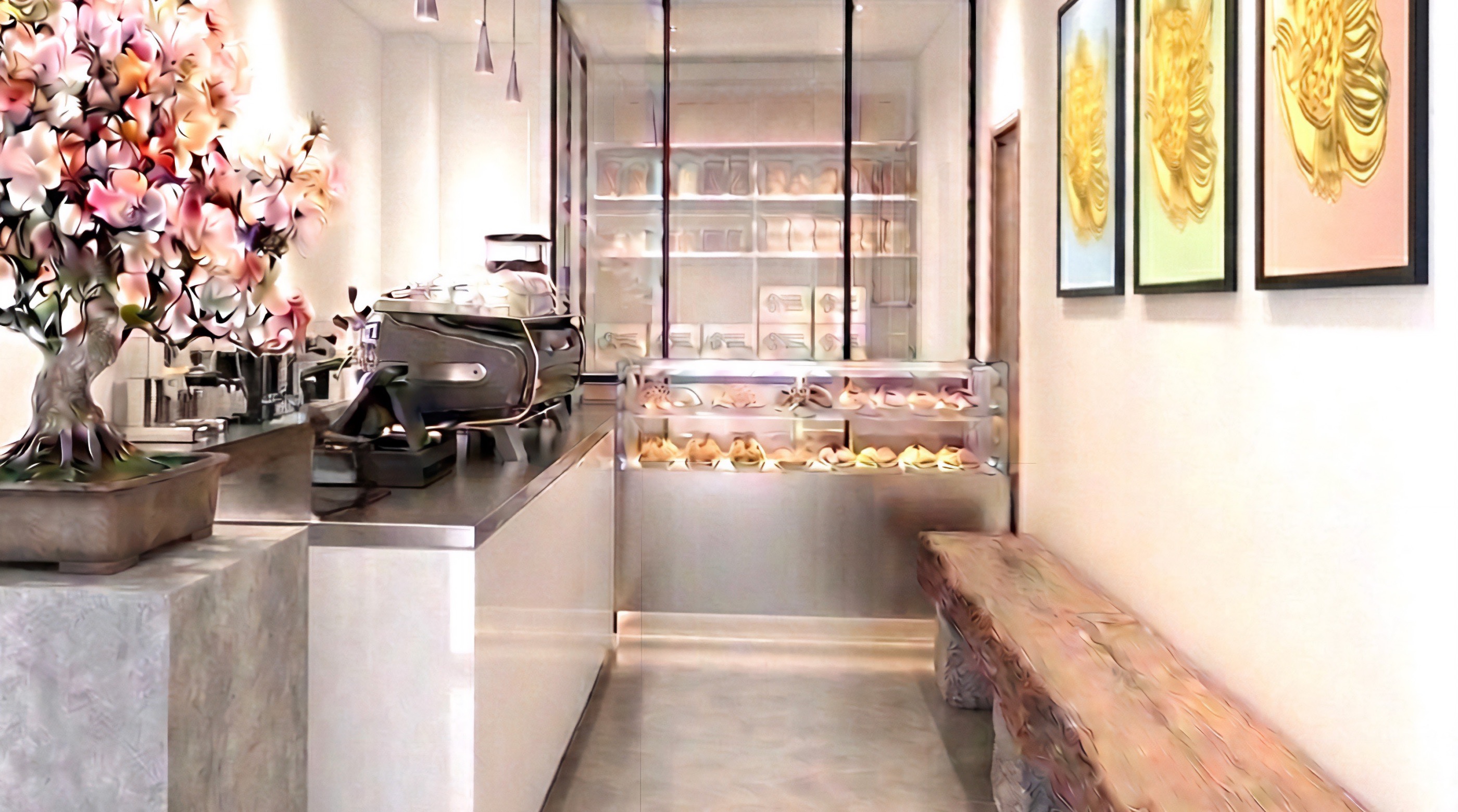 移動式什器を採用することで、客席ゾーンがワークショップ会場やギャラリーへと変貌。店内をキャンバスとし、アーティストの展示会、生産者直通の朝市、餡の食べ比べなど常に新しい刺激を発信します。