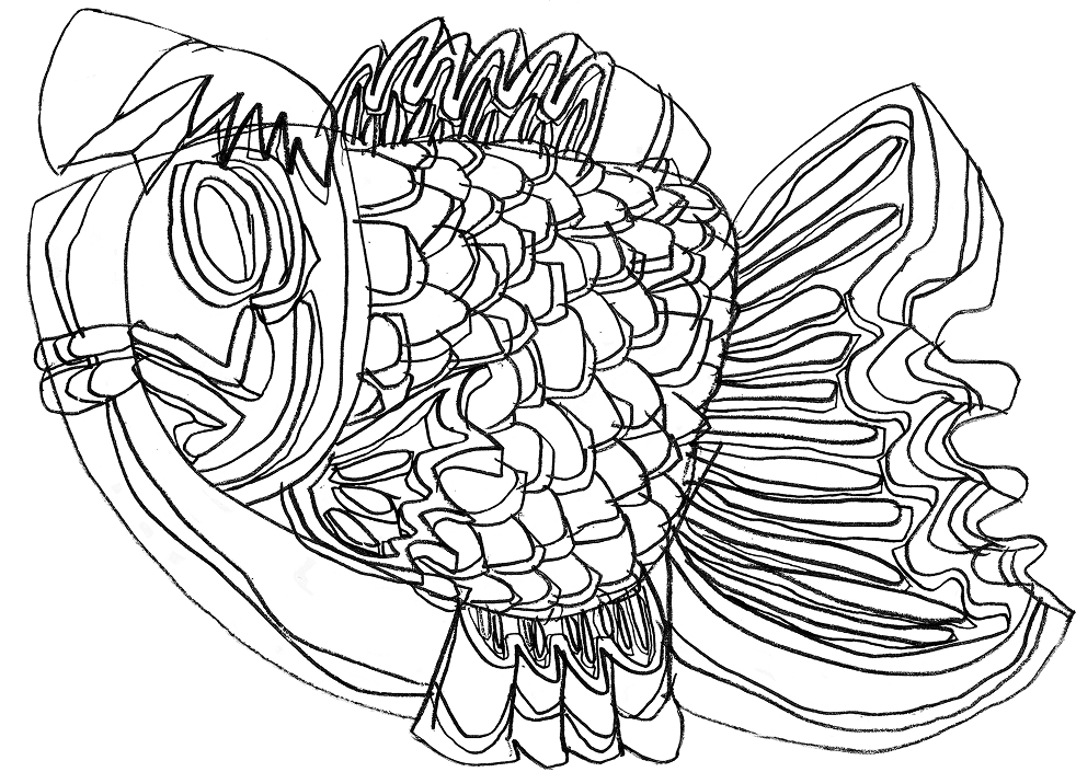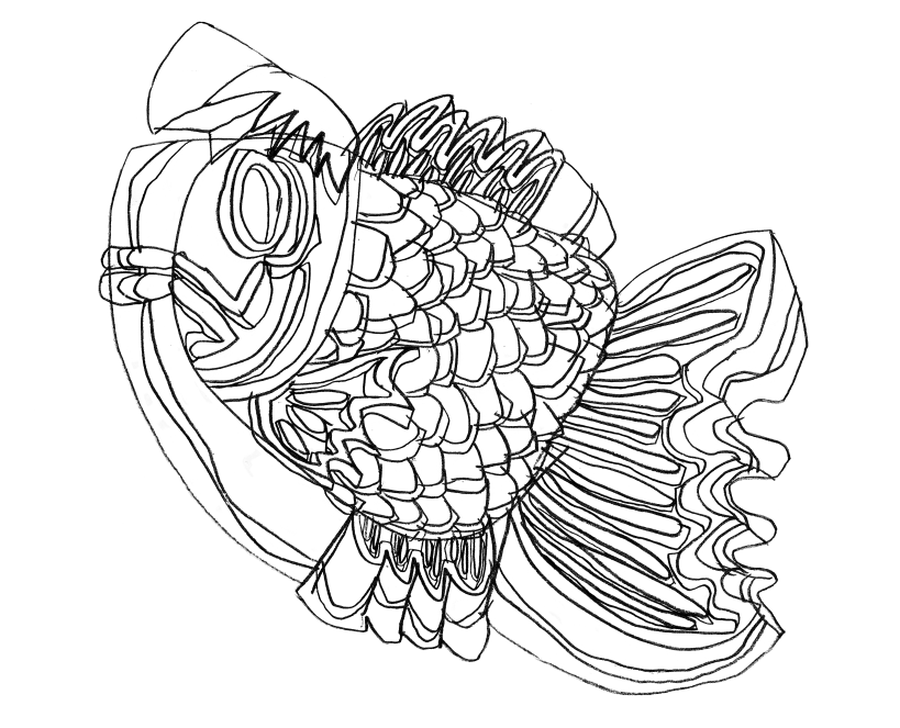 画家・落合翔平氏によるカバービジュアル。ゆらぎと震えるような線と独特のパース。たいやきというモチーフに「生物のような生命力」と「熱量」。 熱による空間の歪みや、型から溢れ出るようなエネルギー。